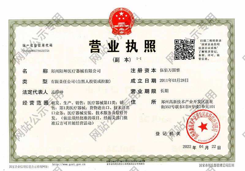 鄭州陽(yáng)坤醫(yī)療器械有限公司是集研發(fā)、生產(chǎn)、經(jīng)營(yíng)、服務(wù)為一體的高科技新興企業(yè)。公司位于鄭州市高新技術(shù)開(kāi)發(fā)區(qū)?偛繐碛袠(biāo)準(zhǔn)的生產(chǎn)廠(chǎng)房和產(chǎn)品研發(fā)基地。擁有一批既有理論又有豐富實(shí)踐經(jīng)驗(yàn)的知名專(zhuān)家、管理人才、科技人才和銷(xiāo)售服務(wù)人才,從而使公司具備了科學(xué)化、規(guī)范化的現(xiàn)代企業(yè)管理機(jī)制。形成了研發(fā)、生產(chǎn)、銷(xiāo)售、服務(wù)為一體的企業(yè)體系。